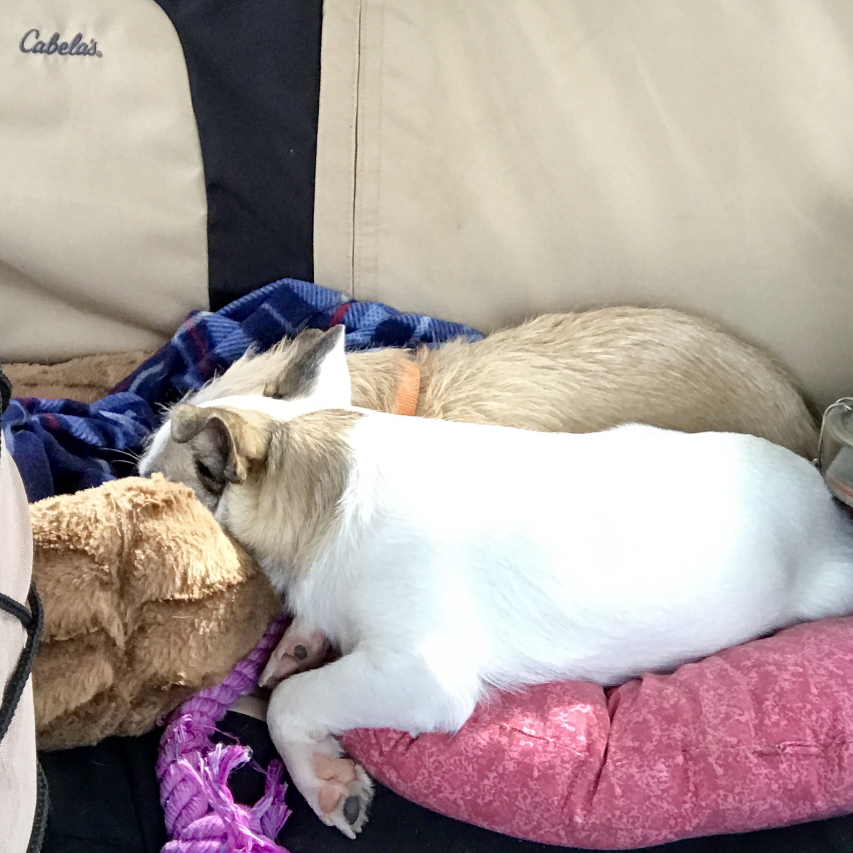 So far Eustace has chewed through his new collar, and then through the new harness we got him! Charlie is being a perfect angel, the little seasoned traveler that she is.