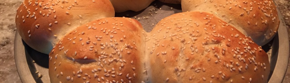 Put all these goodies into the bread pan and hit the “dough” button. After that’s done, take the huge dough ball out and shape it into 6-8 bun shaped balls. (Normal dough balls that are then flattened a little=bun shaped). Cover with a kitchen towel and let them rest for almost an hour. Preheat your oven to 400 or convection oven to 375. Brush the tops of the buns with an egg wash (egg white+2tbs water) and sprinkle with sesame seeds~only if you want to! Stick them in the oven for 10-15 minutes, watching closely to make sure they don’t get too dark or burn. Then let them cool before slicing as it makes it a little easier.